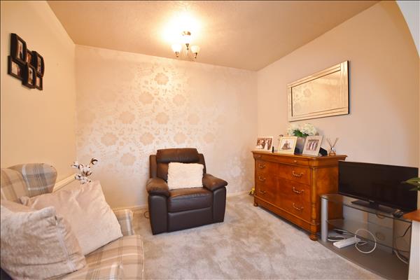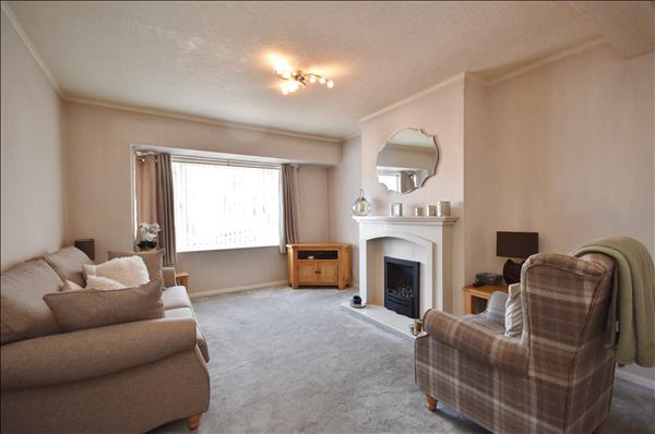 Double glazed white uPVC bay window to front. Traditional style fireplace with coal effect living flame gas fire
