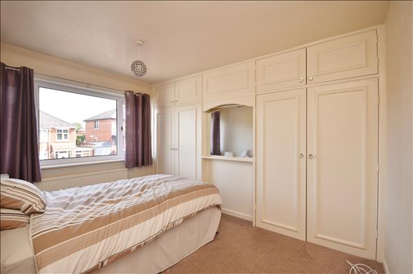 Double glazed white uPVC window to front. Radiator. Range of built in wardrobes with overhead storage